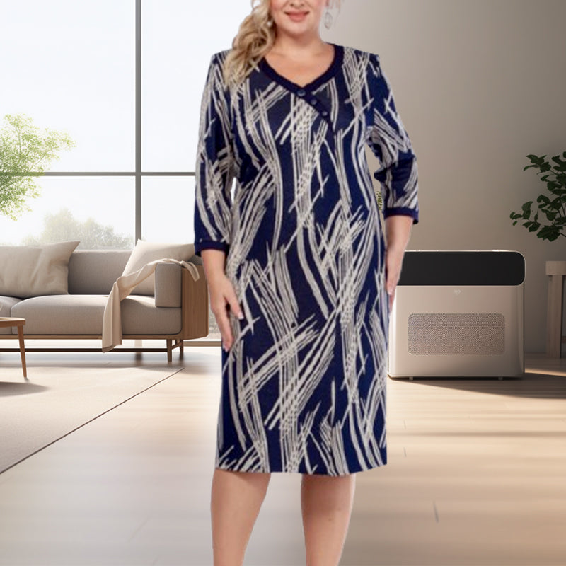 🌸Eleganckie sukienki damskie z abstrakcyjnymi wzorami i siedmioma rękawami