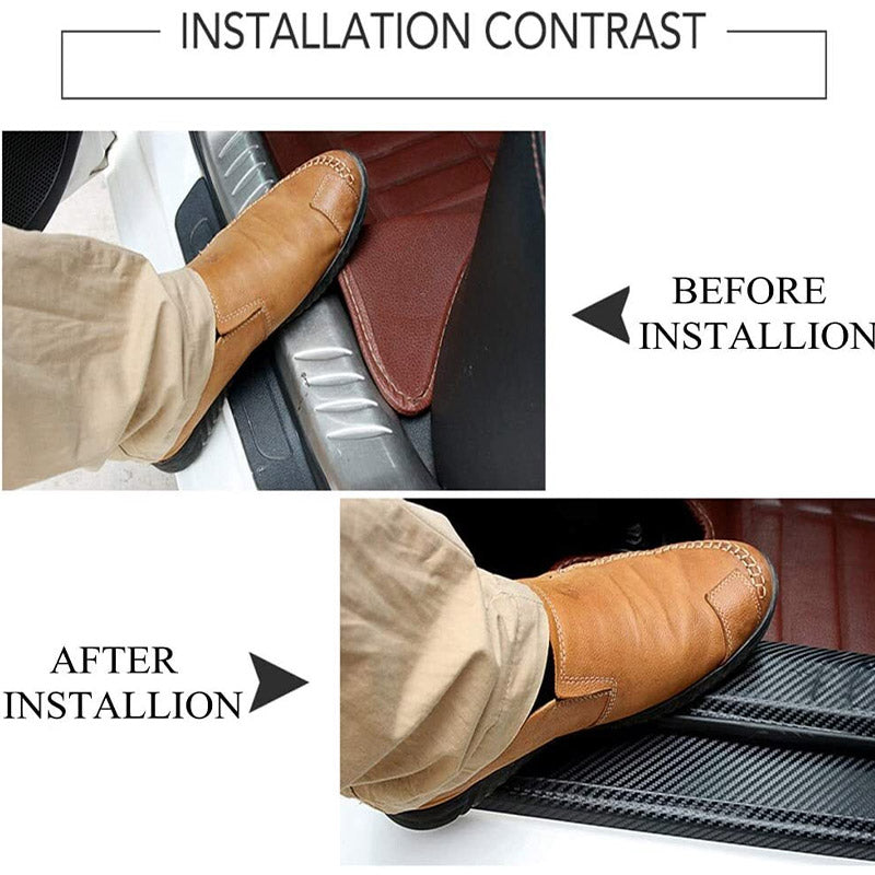 - Materiał wysokiej jakości: czarna naklejka 4D z włókna węglowego. Osłona progu drzwi wykonana jest z folii winylowej o fakturze włókna węglowego, wodoodpornej i odpornej na wysoką temperaturę. Po kilku testach w wysokich temperaturach i w deszczowe dni odkryliśmy, że nie topi się i nie pęka. Naszym celem jest wysoka jakość i wierzymy w Ciebie.