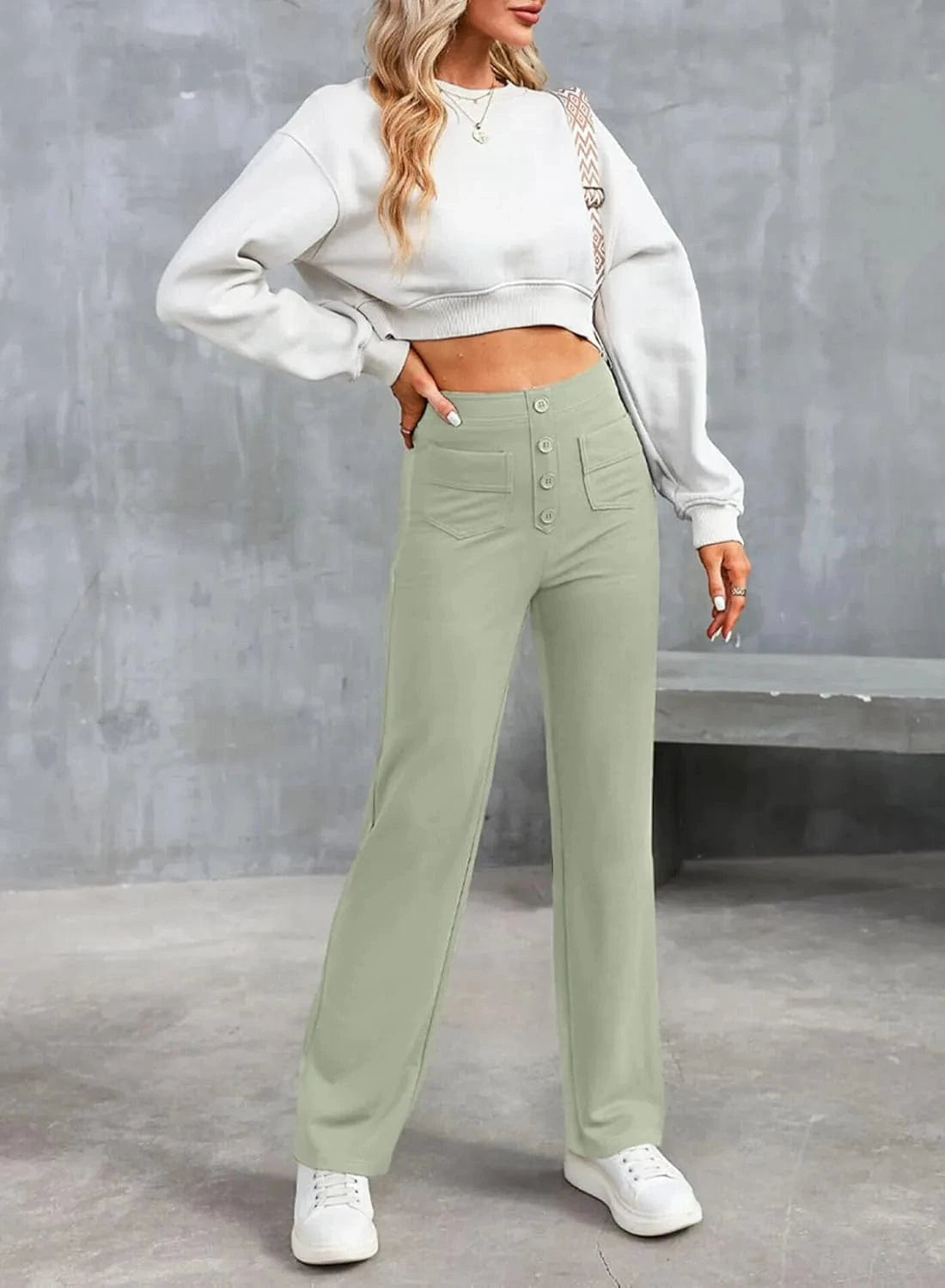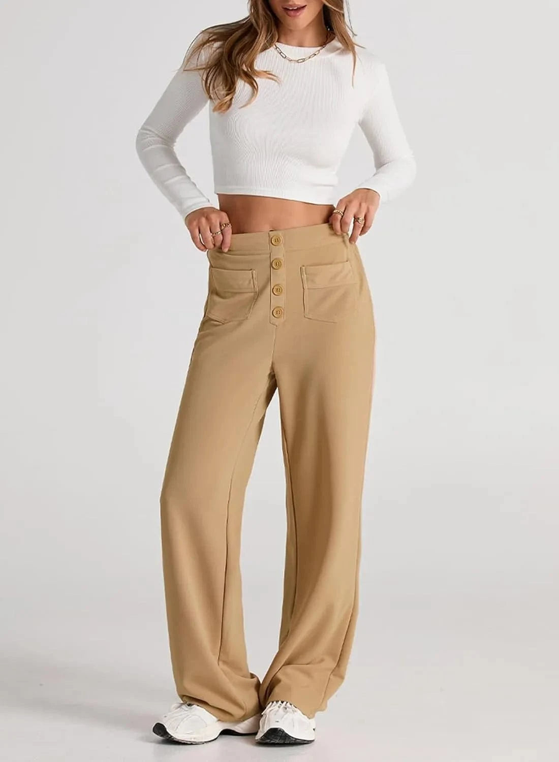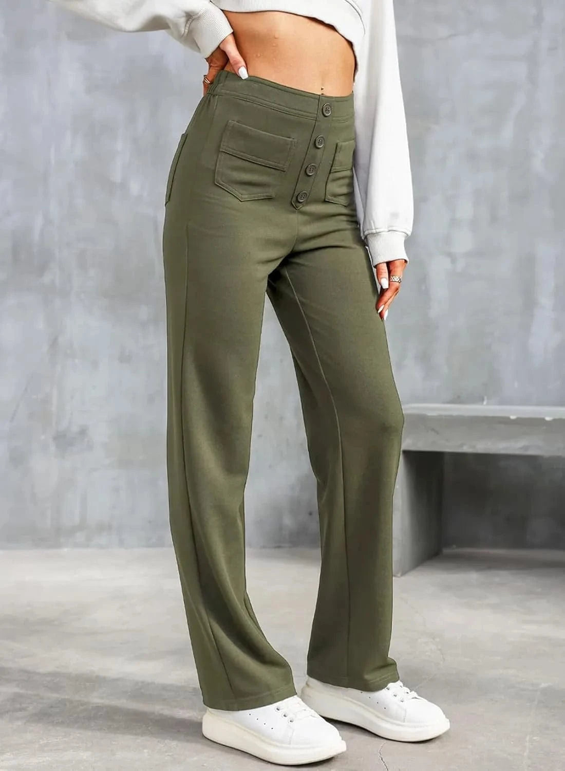 ♻ Stylowe detale guzików: Kto powiedział, że guziki muszą być tylko funkcjonalne? Nasze spodnie mają piękne akcenty guzikowe.