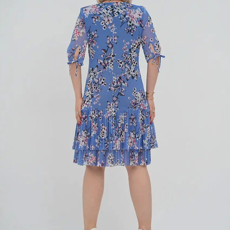 Elegancka damska sukienka plisowana z krótkim rękawem i długą spódnicą