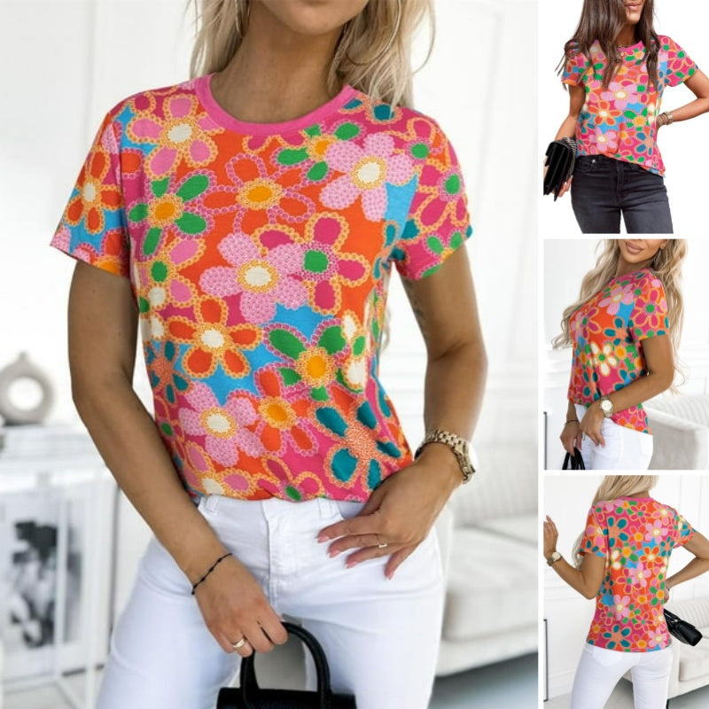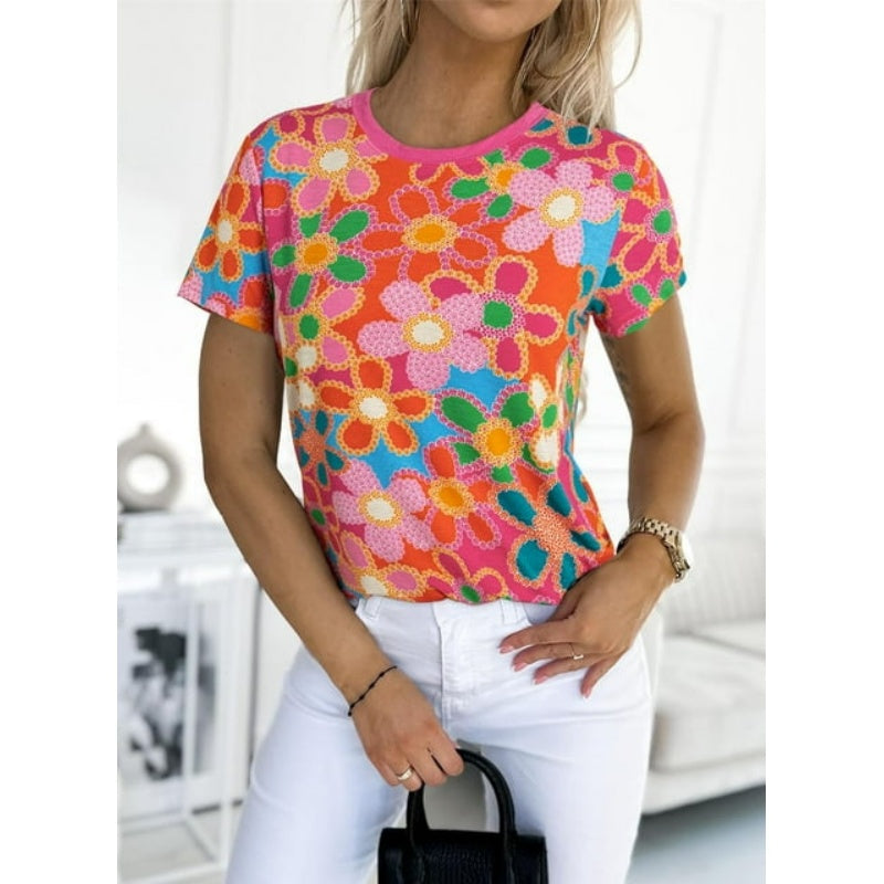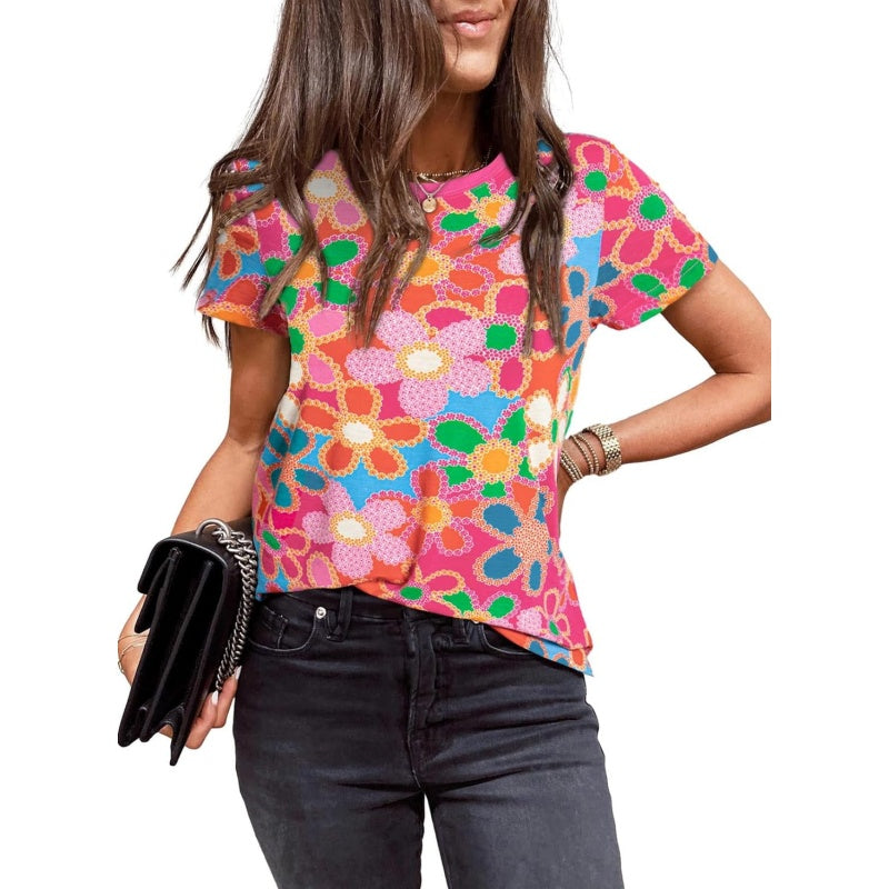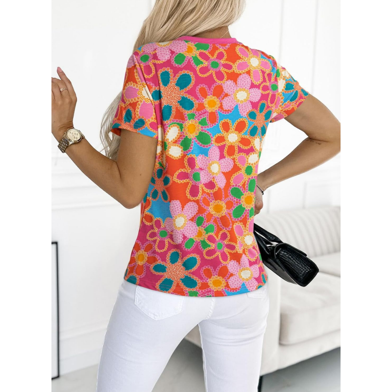 Opakowanie produktu:1 * Damska różowa koszulka z kwiatowym nadrukiem