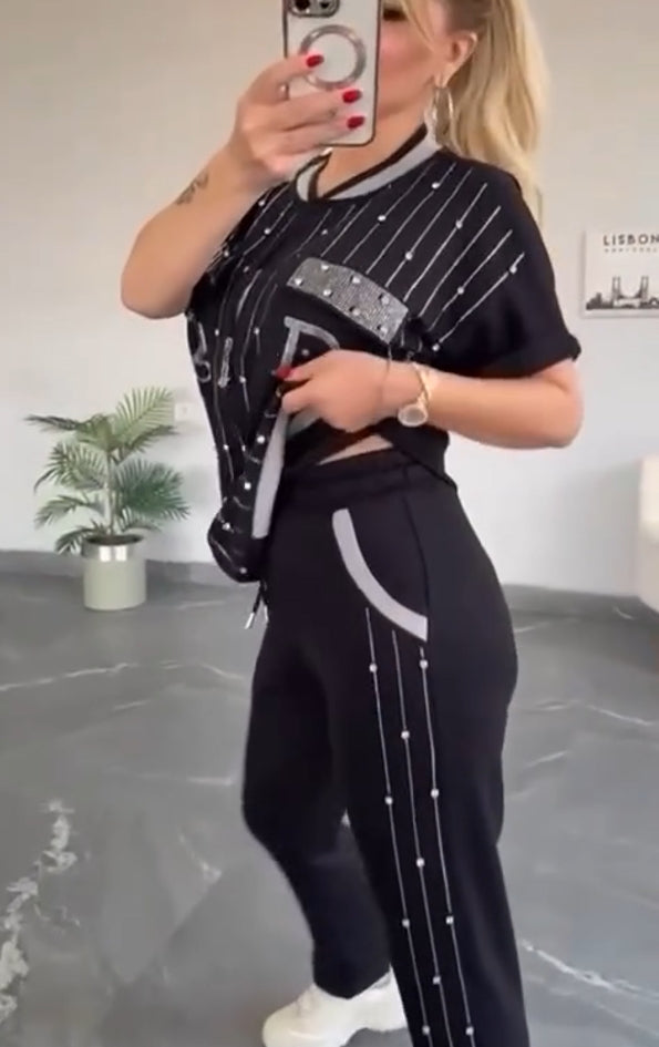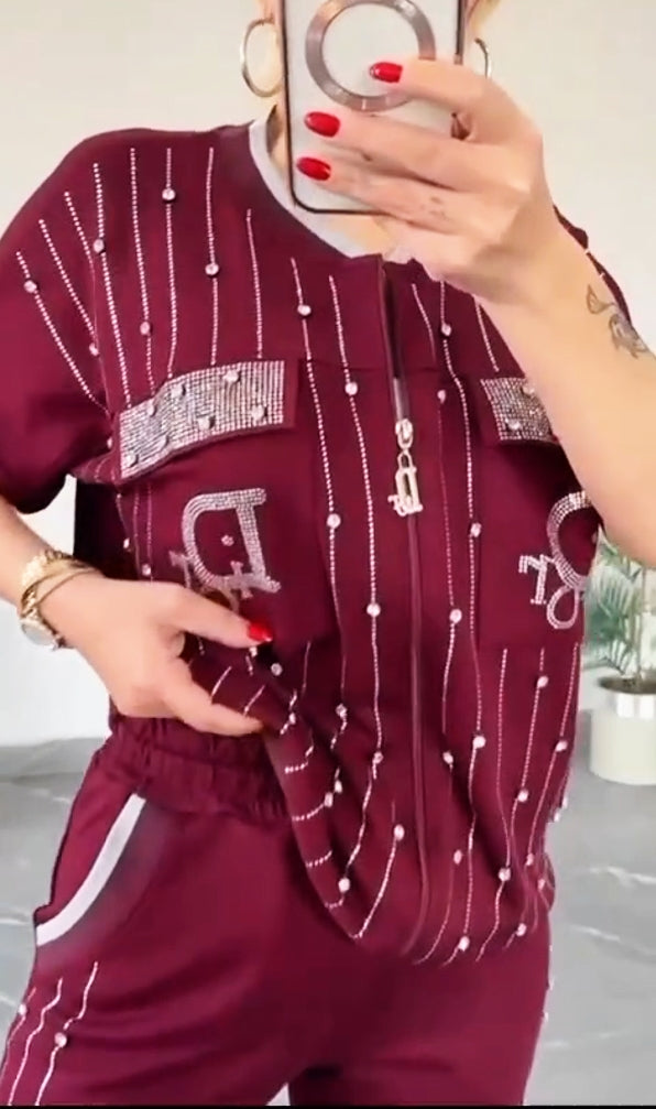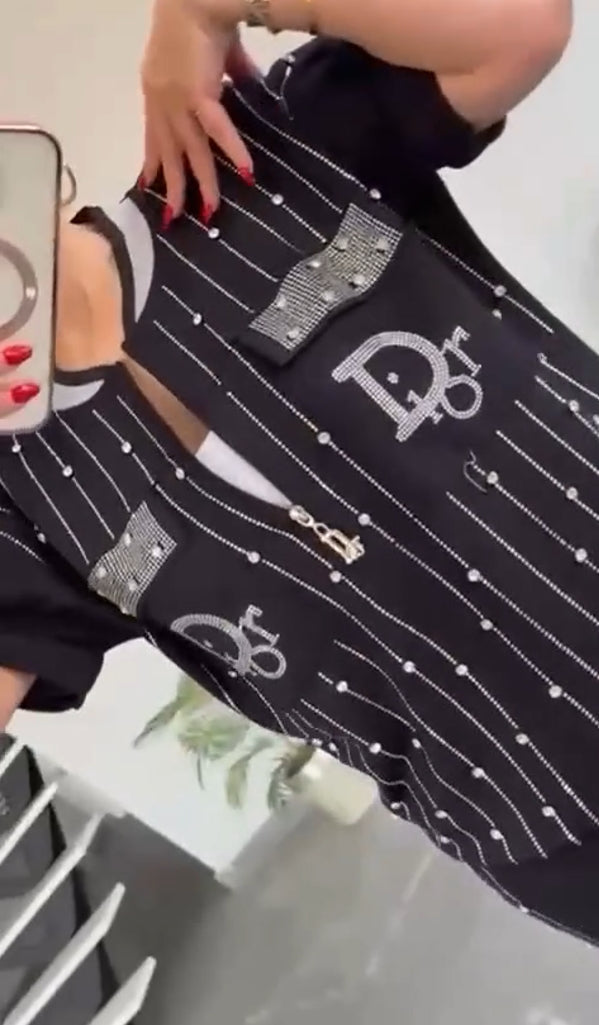 💎Dwuczęściowy zestaw z zamkiem błyskawicznym z kryształkami