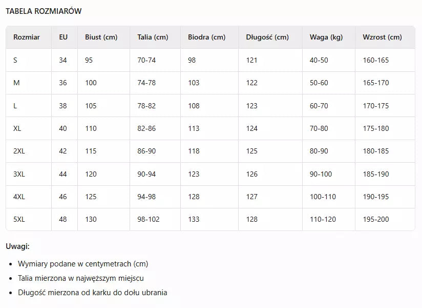 Rozmiar: S, M, L, XL, 2XL, 3XL