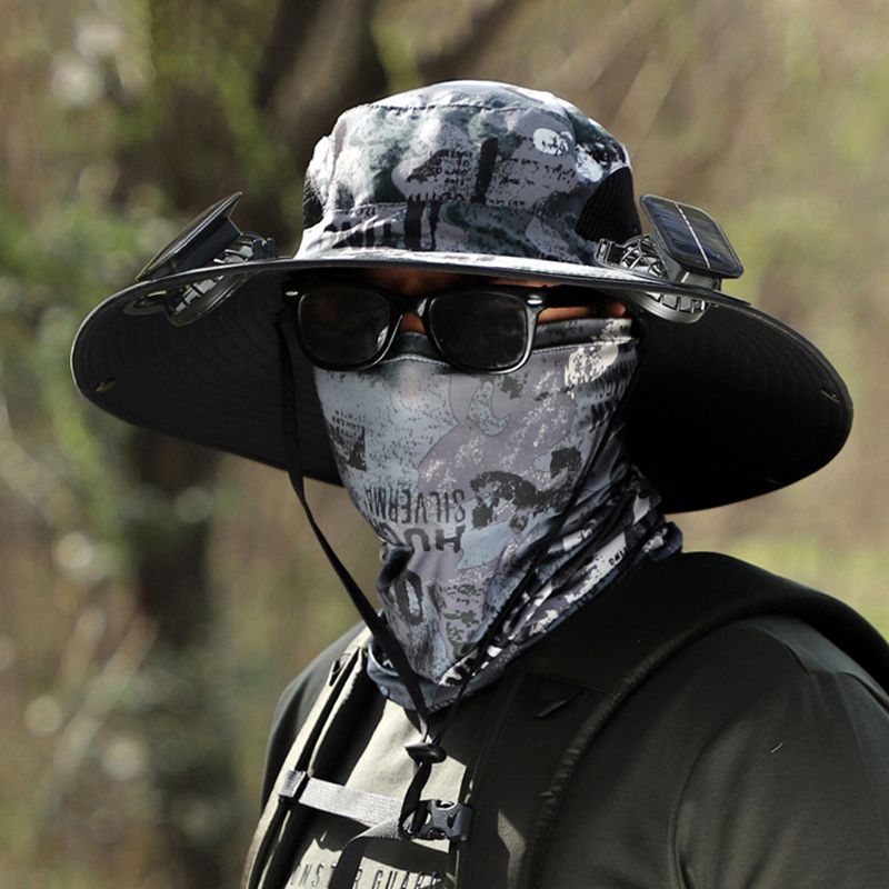 Męski kapelusz przeciwsłoneczny Fisherman Hat z 2 odłączanymi wentylatorami słonecznymi