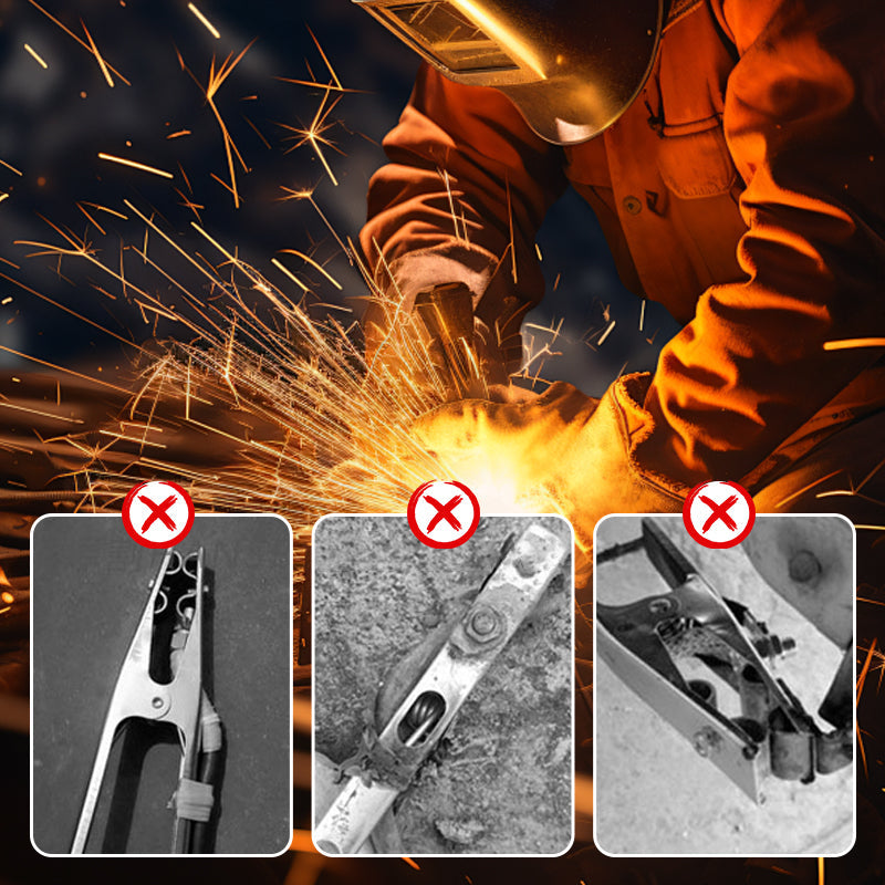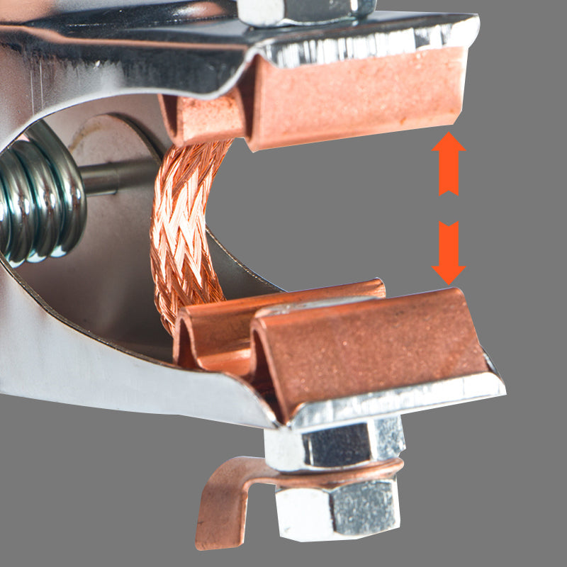 WYSOKI PROCENT, MAŁE WYTWARZANIE CIEPŁA: Cęgi zaprojektowano tak, aby skutecznie przewodzić prąd, wytwarzając minimalną ilość ciepła. Gwarantuje to stabilne i bezpieczne uziemienie podczas spawania, zapobiega przegrzaniu i zwiększa wydajność spawarki.