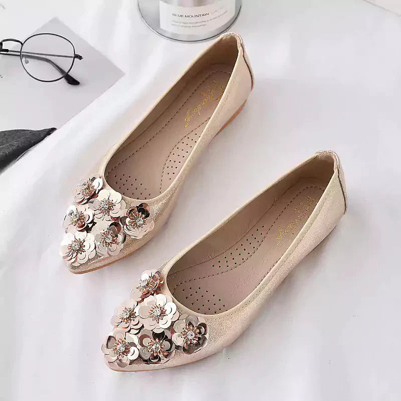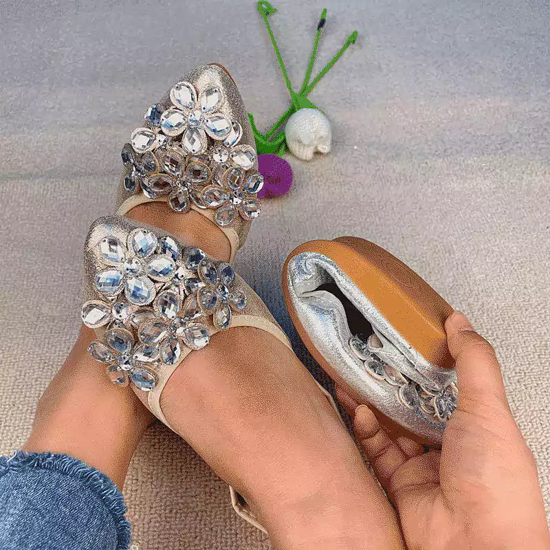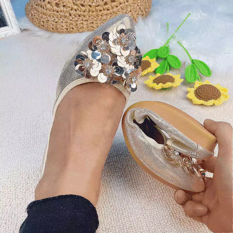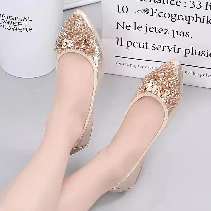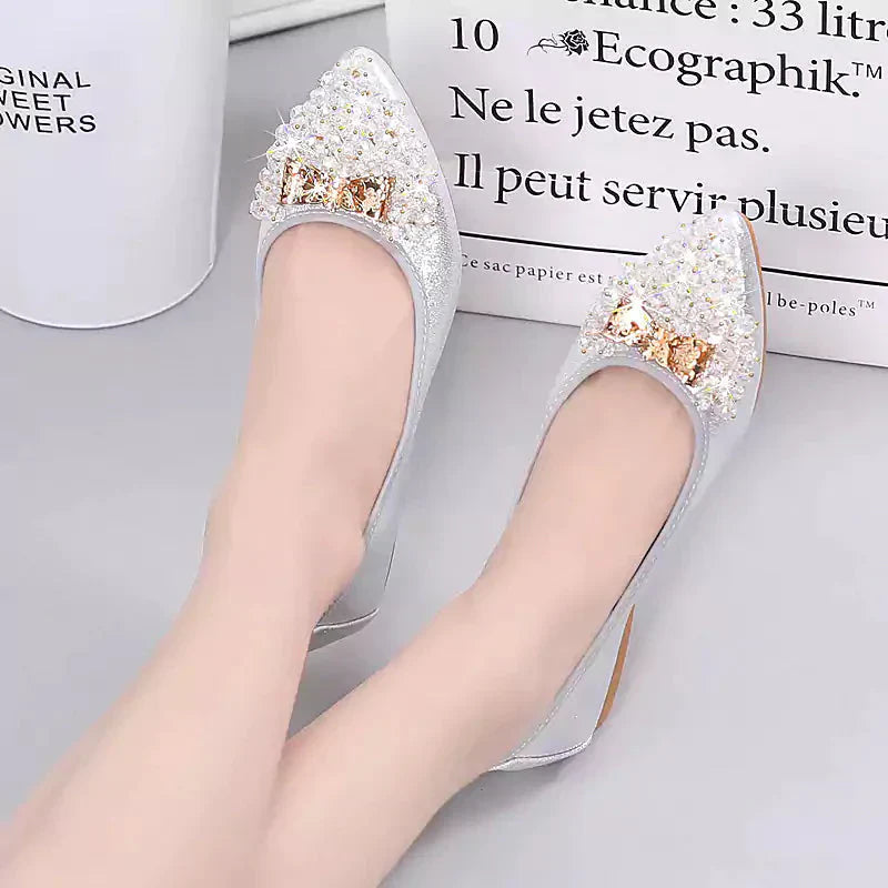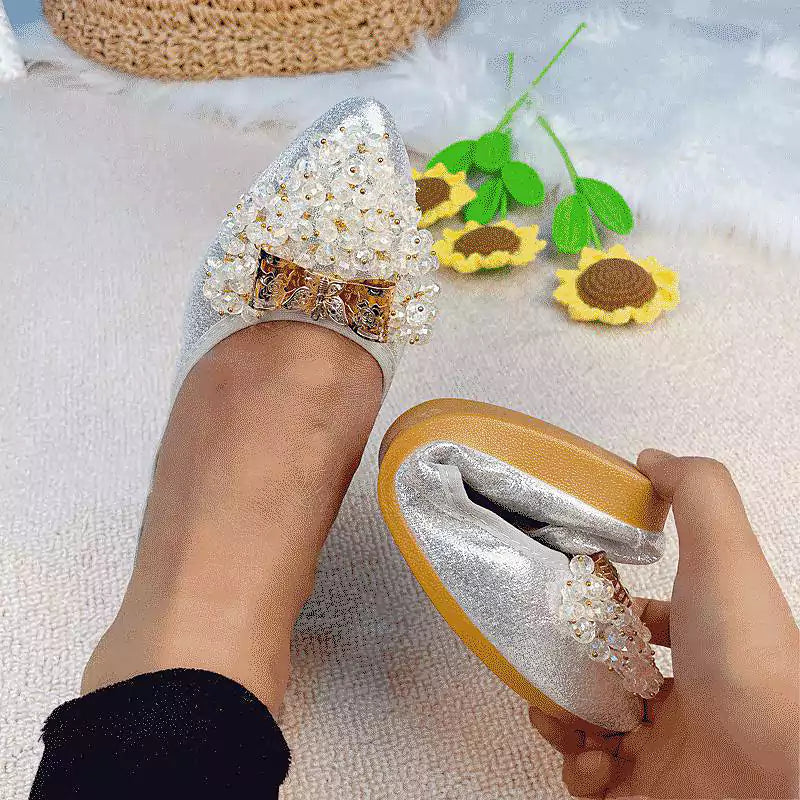 Női balettcipő strasszokkal Esküvői balerina cipő Összecsukható, csillogó menyasszonyi slip-on cipő Ezüst díszítésű, alacsony sarkú cipő Róka papucs