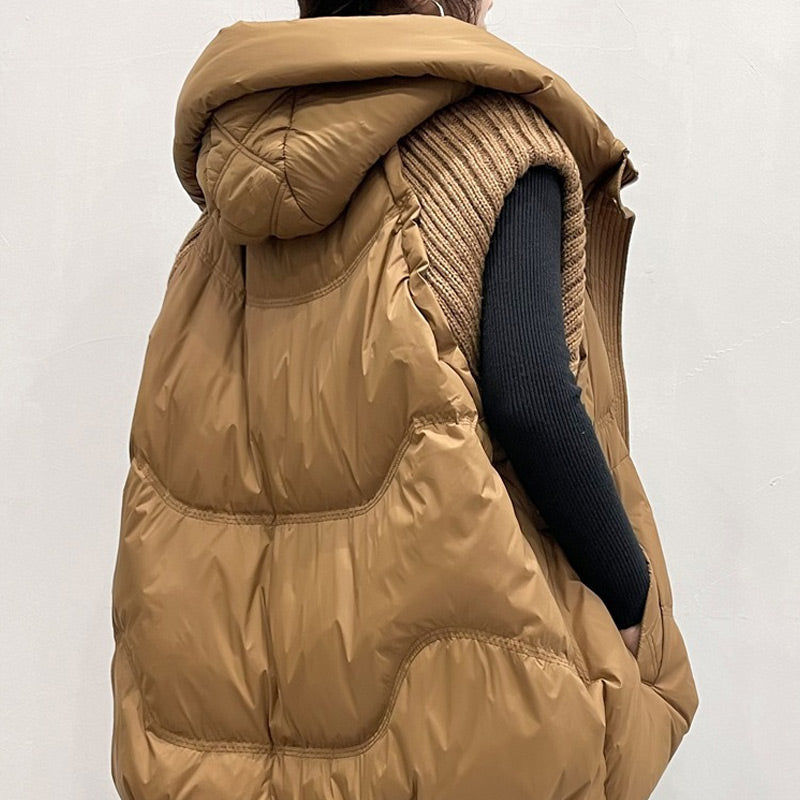 Női kötött, ujjatlan patchwork kacsatollkabát