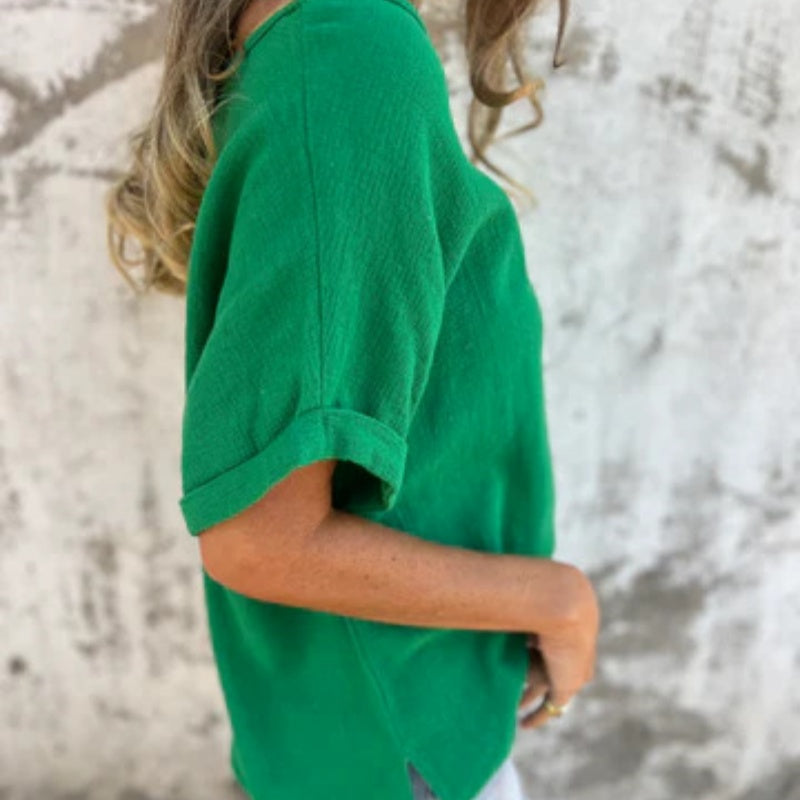 VERSATILIS STÍLUS: Ez az egyszínű, kerek nyakú felső egy időtlen ruhatár, amely könnyen párosítható farmerrel, rövidnadrággal vagy szoknyával. Egyszerű kialakítása a hétköznapi és félig hétköznapi alkalmak széles skálájához illik.