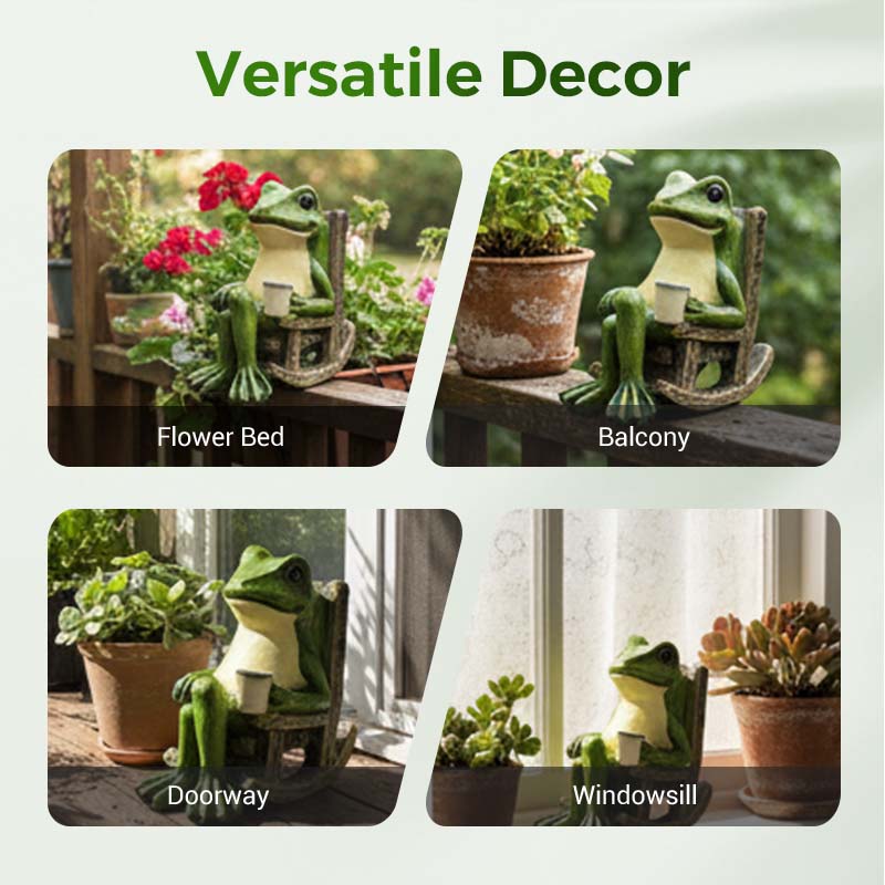 IMÁDNIVALÓ HINTASZTÓ BÜFÉ DIZÁJN – A hintaszéken pihenő béka szeszélyes dizájnja játékos bájt és rusztikus kecsességet kölcsönöz bármely térnek, elbűvölő és otthonos fókuszpontot teremtve.