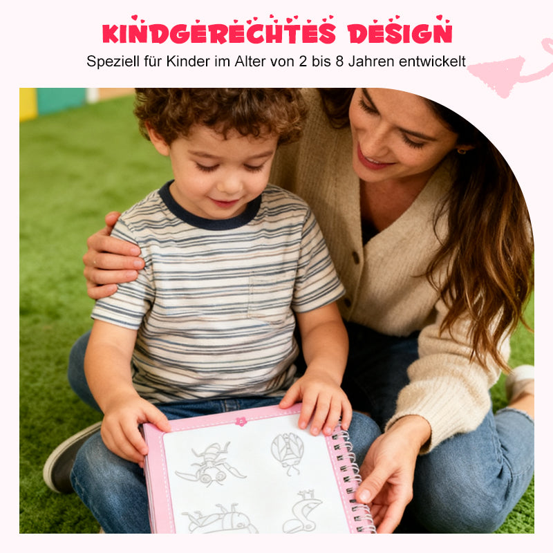 A mellékelt varázstollal rajzolt vonalak rövid idő után maguktól eltűnnek. Így a gyerekek újra és újra gyakorolhatnak papírpazarlás nélkül – ideális a fenntartható és folyamatos tanuláshoz.