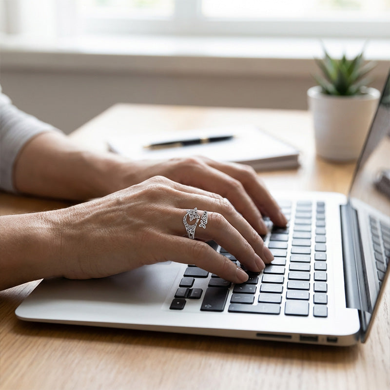 A praktikus, nyitott kialakítás lehetővé teszi a finom méretállítást, így a gyűrű a legtöbb ujjra illeszkedik pontos mérés nélkül.