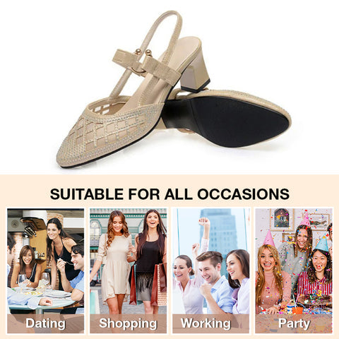 Ergonomikus kialakítás – A bokapánttal, hegyes orrral és kristályokkal rendelkező szandálok ergonomikus kialakításúak, amelyek megtámasztják a láb ívét, és enyhítik az izomfájdalmakat, miközben stabilitást biztosítanak.