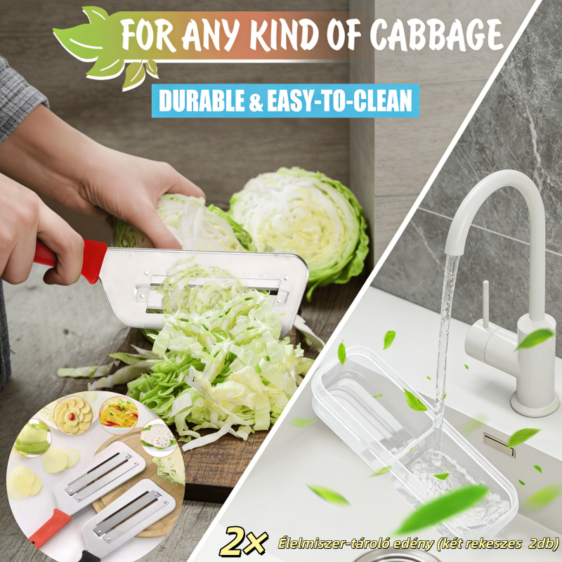 Kivéve, hogy tökéletesen aprítja a káposztát káposztasalátához. Különböző zöldségek és gyümölcsök szeletelésére is használható, beleértve a salátát, uborkát, sárgarépát, burgonyát, chilit, hagymát, almát, körtét stb.