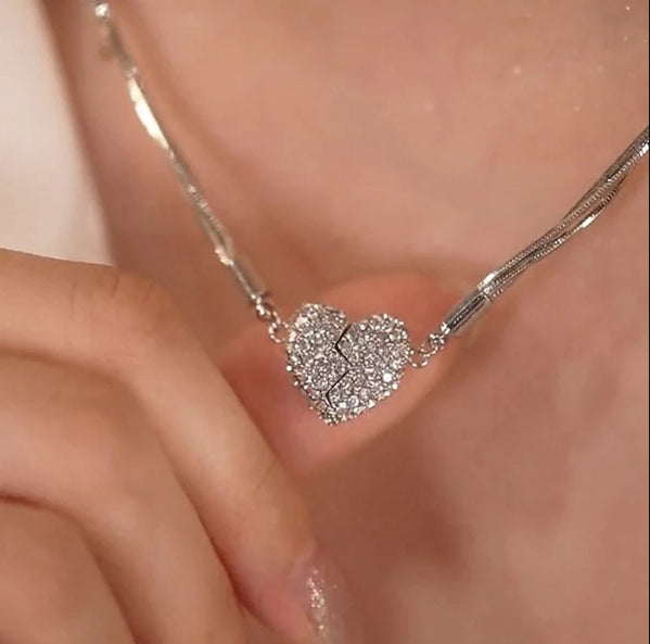 - Egy egyedi és rendkívül csillogó lánc minden nő nyakát díszíti. A lánc kiváló minőségű, tartós és kiváló minőségű anyagokból készült. A szív mindkét felében található egy mágnes, amely összeköti és összeköti a szív két felét.