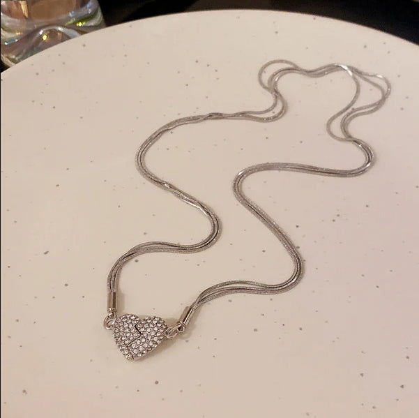 Elegáns nyaklánc, csillogó - "Mágneses szív"